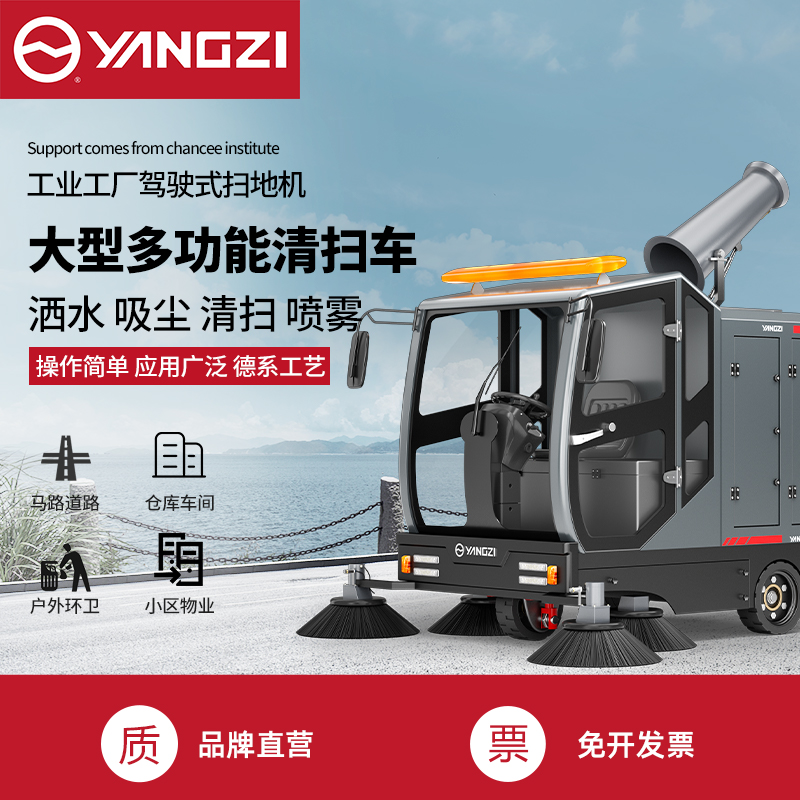 揚(yáng)子YZ-S15駕駛式掃地機(jī)清掃效率可達(dá)15000㎡/h,實(shí)現(xiàn)了掃地+吸塵+霧炮三合一的功能。靈活霧炮設(shè)計(jì),大角度噴霧可以完成水平角度350調(diào)節(jié),使用品牌電機(jī),續(xù)航能力更強(qiáng),爬坡度可以達(dá)