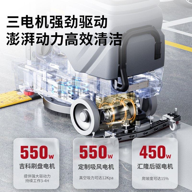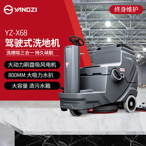 揚子X68駕駛式洗地機一機解決地面清潔問題,能夠代替8-10名環(huán)衛(wèi)人員的工作量。充滿電以后可以使用3-4h,無需頻繁注水換水,使用起來更加省時省。