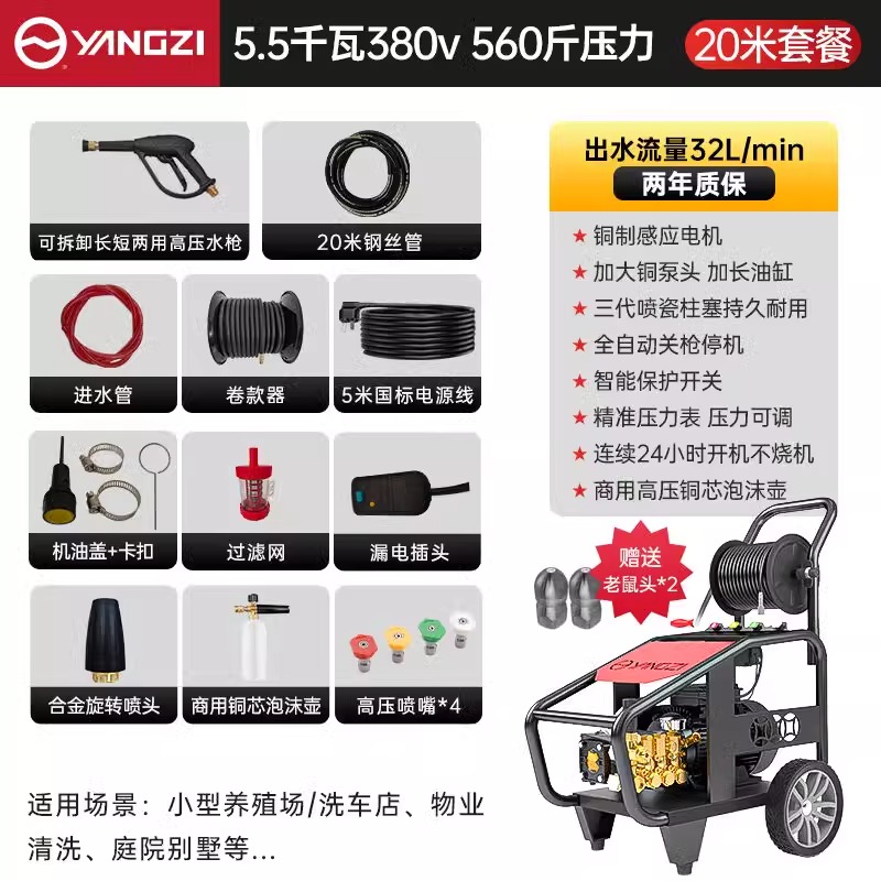 揚子紅鋒高壓清洗機YZ-QXJ 沖洗除銹二合一 機場街道貨車清洗,進口高性能AR泵,不受水源限制,突破環(huán)境限制,去銹更自由,定制高壓管結(jié)實耐用。